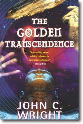 With Greg West of MostlyFiction.com. also see his review of THE GOLDEN AGE. John C. Wright spent his formative years living on military posts. His father participated in helicopter antisubmarine warfare and later was chief test pilot for Patuxent River Naval Air Station, and went on to work for IBM and the British Government in their avionics development. Young Wright therefore grew up in a number of locations across the country surrounded by “polite and well-groomed officers and men, responsible, undemonstrative, unemotional, and every man a team-player willing to put the unit first.” He goes on to add, “Try to imagine my surprise as I was exposed to popular culture in America.” He was educated in the “great books” program of St. John’s college in Annapolis and later graduated from the Marshall-Wythe school of law on the campus of the College of William and Mary’s in Williamsburg in 1987. THE GOLDEN AGE was his first published novel, printed by Tor Books in April 2002. He is now 42 years old. He describes himself as an attorney by training and a philosopher by inclination, though he hastens to add that he has never practiced law, and turned the to less lucrative and more rewarding field of muckraking journalism. He currently lives in fairytale-like happiness with his wife, and their three beloved children, Orville, Wilbur and Juss Wright. Mrs. Wright tolerates his eccentricities, as she is herself an author. She writes under the pen-name L. Jagi Lamplighter. Wright first contacted me by e-mail in response my review of THE GOLDEN AGE on MostlyFiction.com in which I scolded the publisher for neglecting to credit the cover artist in the paperback edition. This is what he said: John C. Wright: The artists’ name does appear on the jacket flap of the hardcover edition. Shelley Eshkar is the designer. As far as I know, my editor at Tor books has never met Mr. Eshkar face-to-face. I am honored to have his beautifully rendered work grace the cover of my humble books. Even from across a crowded bookstore Mr. Eshkar’s designs stand out from a crowd of unicorns, dragons and rocket ships, and the details in the drawing show that he read my manuscript.
