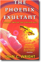 Greg West: John C. Wright: The voyager's predilections and the provisions his lifetime has accumulated for him might make certain voyages easier than others: the man inured to the cold might seek the Riphaean mountains, and breathe the freezing aether from a peak as he compassed the earth beneath him in once exulting glance, where the man inured to heat, eager for the painted orchids and begemmed serpents of the torrid zones, might head south. In such a way the habits of thought of the writer, his experiences and interests, prompt his choice of theme and matter. To extend my metaphor, travelers with wiser heads than mine might plan the voyage step by step, with notes and outlines charting their way before the first step is taken. I myself have a weakness for digressions, for skipping off to explore odd side-paths that appear in the gloom and thicket. One loses a certain number of readers with every such turn, but one hopes the remaining readers will be charmed by the new and varied sights along the way. In this case, my ambition was to write a tale set in a future as far remote from our own time as my imagination would permit: a certain degree of grandeur and magnificence naturally suggested itself. Assuming civilization continues to progress (this book is fiction, after all), the tale is inclined to the Victorian optimism of H.G. Wells, who predicted our remote posterity would be as gods: hence, godlike names and references were suited to the story.